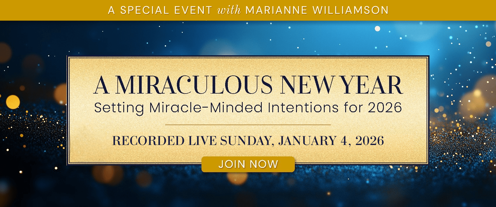 You’re invited to join Marianne for A Miraculous New Year — a special 2-hour inquiry into the dynamics of miracle-mindedness, specifically casting the light of spiritual understanding onto the year ahead.